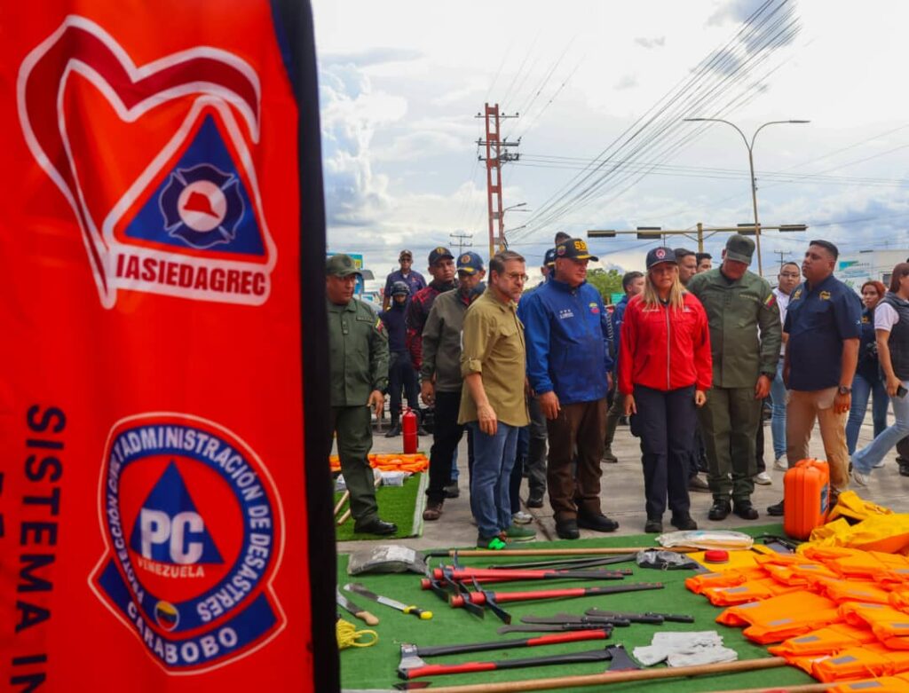 Además, se dotó al Sistema de Gestión de Riesgo de Carabobo con implementos como hachas, motosierras, sogas, guantes, ponchos, palas y desmalezadoras, fundamentales para mitigar incidencias ante las ondas tropicales previstas para este año.