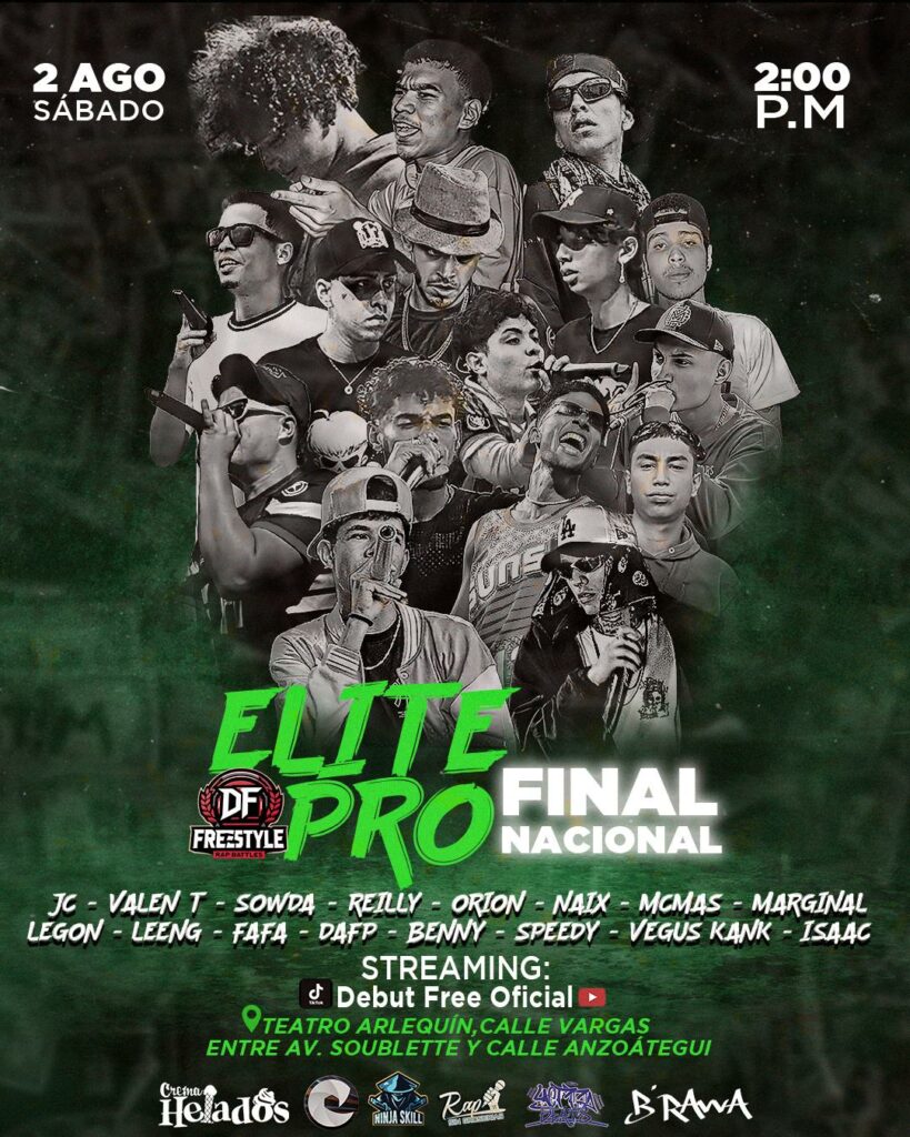 Precisó que durante esta final Élite Pro Nacional participarán los campeones regionales Vegus Kank de Ballenitas FT. Debut Free en Maracay; Dafp de El Free en Yaracuy; Valen T de Spitting Fire HH en Carúpano; Marginal A.F.P en Portuguesa, Reilly Rage de Los Valles Underground en Los Valles del Tuy, Legón de Sucrania Rap en Lara; Sowda de Valhalla Freestyle en Táchira y MCMAS de TFD en Anzoátegui.